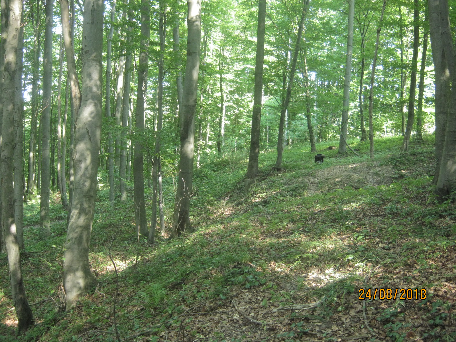 na zdjęciu powyżej widać możliwy leśny fragment wału środkowego i fosy przed nim